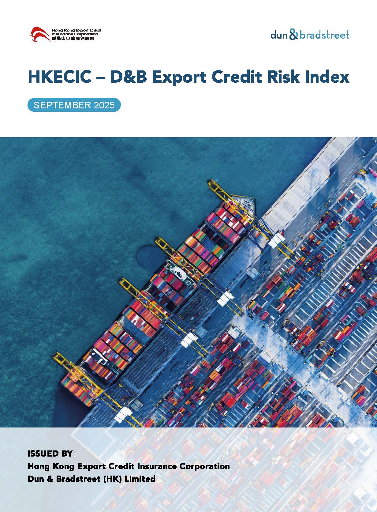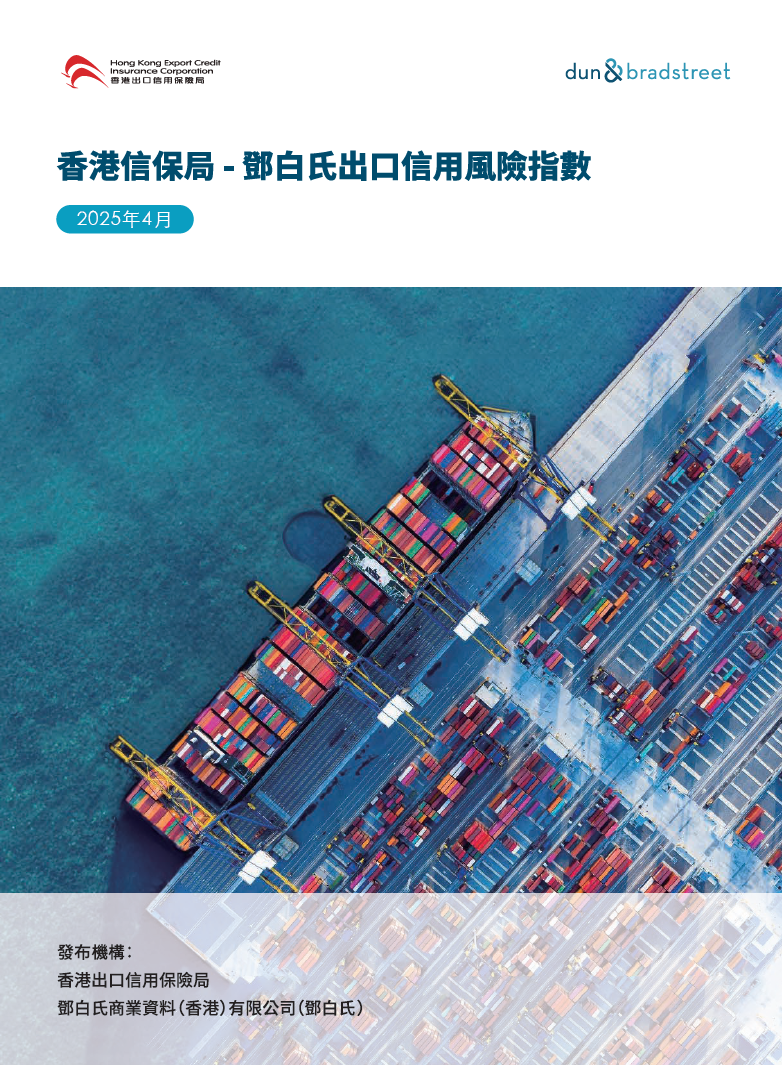 「香港信保局 - 鄧白氏出口信用風險指數」由香港出口信用保險局(香港信保局)和鄧白氏編製,同時利用鄧白氏和香港信保局的數據進行交叉分析。鄧白氏從九個不同角度提供國家和地區風險指標。國家和地區風險指標基於鄧白氏的宏觀分析和研究。香港信保局提供保險/賠償和包括市場和行業的付款困難數據。該指數涵蓋5 個市場指數(加拿大、中國內地、德國、英國、美國),以反映普遍出口市場的風險。在每個市場中,包涵3個行業指數(紡織及成衣、電器及電子),以反映特定行業風險。