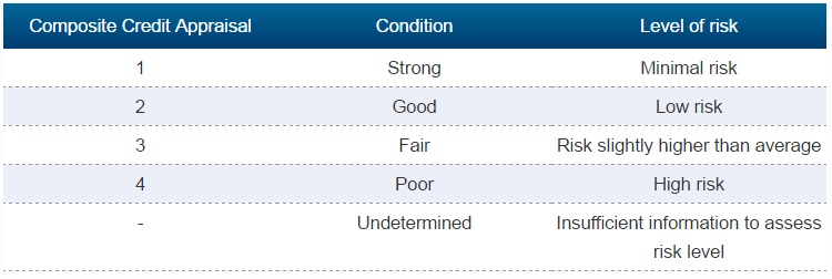 Composite Credit Appraisal reflects a company's health, stability and overall condition, and is